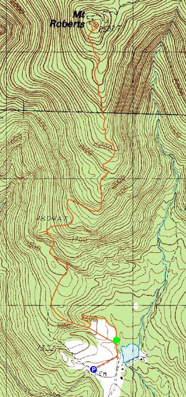 The previous time I hiked Mt. Roberts, I started at the hiker parking lot on Route 171 - way too much of a hike just to get to the trailhead, in my opinion. I had often read about parking at the nearby bottling plant, as if it was an unofficial parking area. Trying it out myself, I was surprised to see a signed hiking parking lot near the plant, alongside the road, only a few minutes from the Mt. Roberts Trail trailhead.