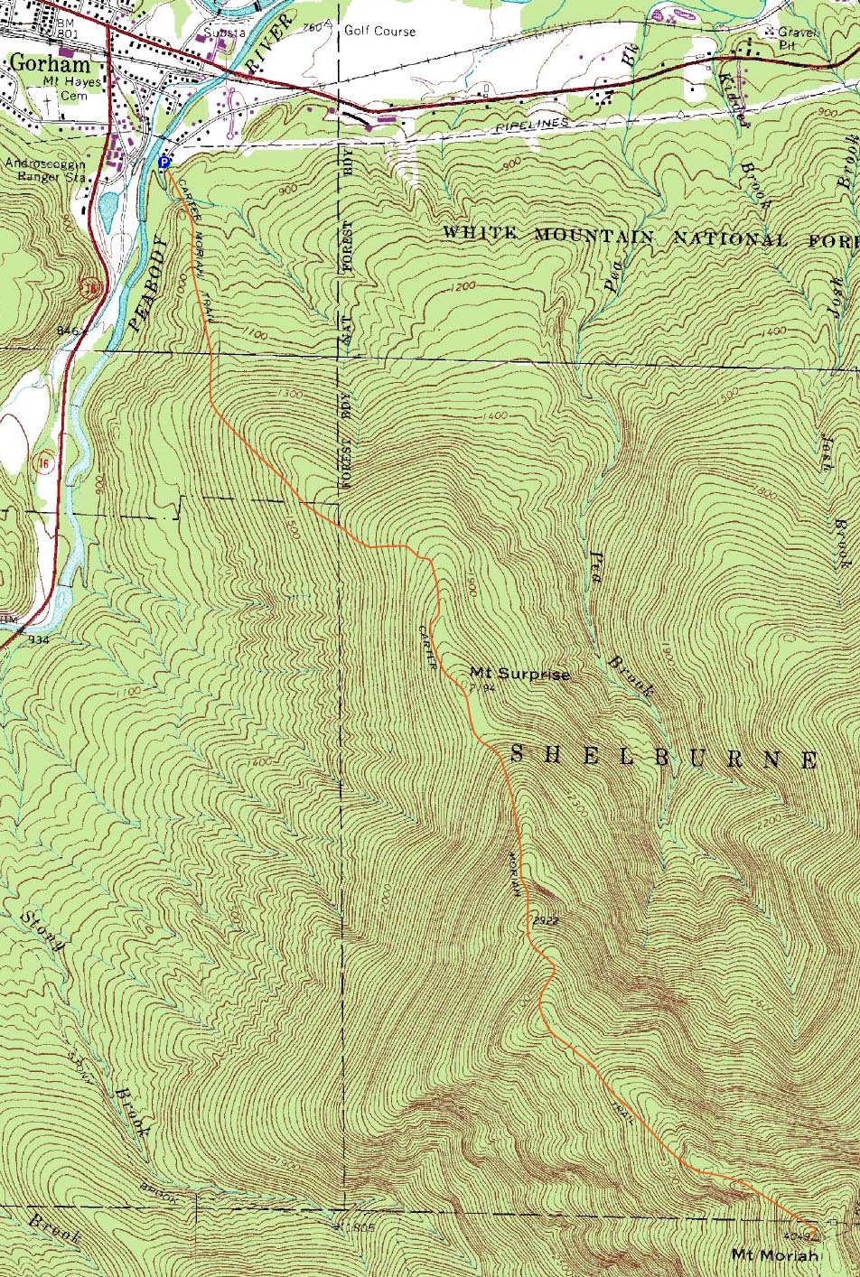 Directions to trailhead: Take Route 16 North to Gorham, then take US 2 East. Just after crossing the river, take a right onto Bangor Street. Trailhead is at the end of this street on the left. There is limited parking at the trailhead.