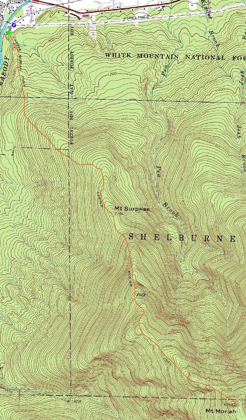 Directions to trailhead: Take Route 16 North to Gorham, then take US 2 East. Just after crossing the river, take a right onto Bangor Street. Trailhead is at the end of this street on the left. There is limited parking at the trailhead.