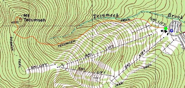 Directions to trailhead: Take Route 49 into Waterville Valley. Follow signs to the alpine ski area. Trailhead and parking are at the top parking lot.