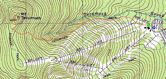 Route: Lower Periphery, The Boneyard, Mt. Tecumseh Trail, Sosman Trail, (summit), Sosman Trail, Mt. Tecumseh Trail, The Boneyard, Lower Periphery