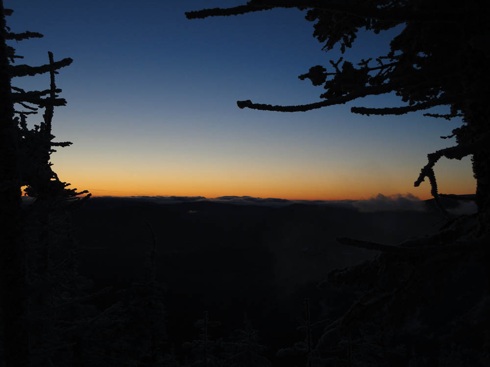 Starting on the ski slopes, I Micropsiked up to the first viewpoint of the Tecumseh Trail, then continued up the hiking trail to the summit. Just prior to reaching the highpoint, I was rewarded with a nice sunset display from the top of the Sosman Trail.