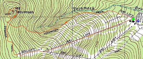 Route: The Pasture, Lower Periphery, The Boneyard, Mt. Tecumseh Trail, Sosman Trail, (summit), Mt. Tecumseh Trail, Sosman Trail, various ski trails