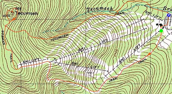 Route: Access road, Sosman Trail, (summit), Mt. Tecumseh Trail