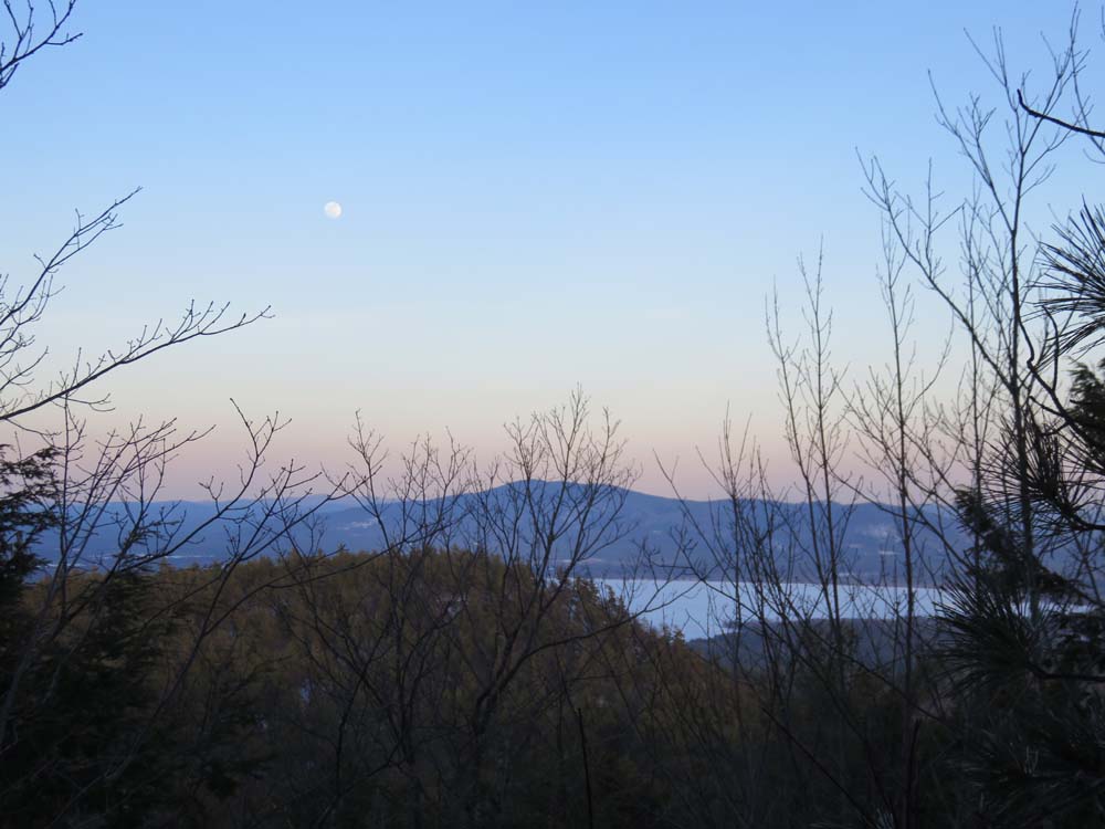 I then bushwhacked over to Grant Peak (the tower access road helps one descend toward the col for a little bit...snowmobile packed) in relatively open woods. No views on the wooded summit, but there were some obstructed views through the trees nearby.
