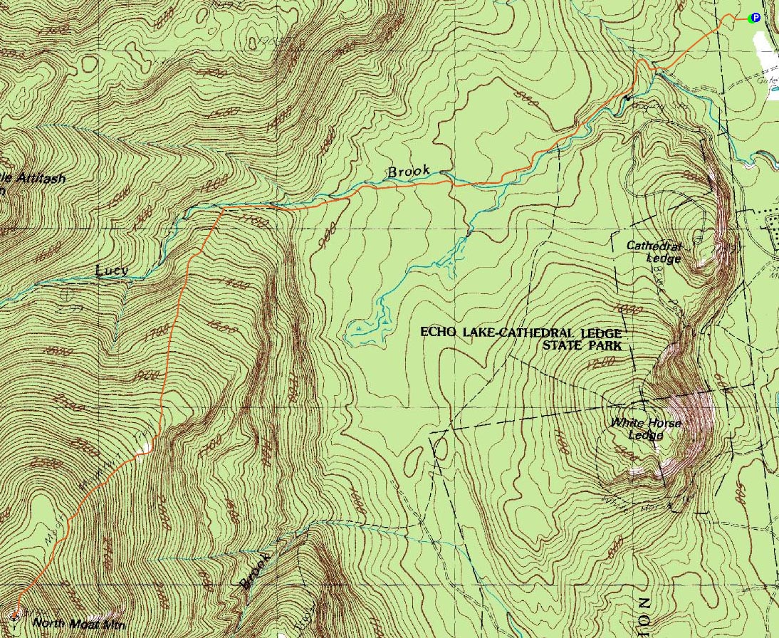 Directions to trailhead: From Conway, take West Side Road northwest to the Diana's Bath WMNF fee parking lot. The Moat Mountain Trail starts at the back of the parking lot.