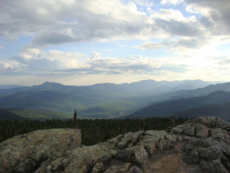 After a few brief open areas, the trail eventually reached the vast open ridge area, where the were superb views. Rocky and somewhat steep, it reminded me of a more tame version of the South Baldface ascent in Evans Notch.