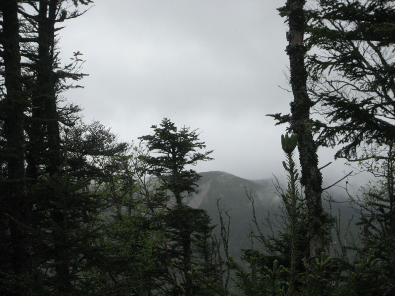While the Lincoln Brook Trail was a bit wet, it wasn't overly bad. The three water crossings, though a bit high, were nonetheless doable without taking off my boots. The Owl's Head slide was rather wet, making things a bit slow. Reaching the top of the ridge, I dropped my pack and made my way to the 'old summit' and then to the 'new summit.'