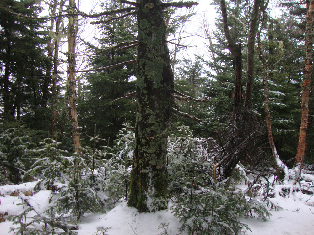 Shortly thereafter, we bushwhacked to the old logging roads into the Brutus Bushwhack glade, headed up the gully, then into the fairly open spruce woods.