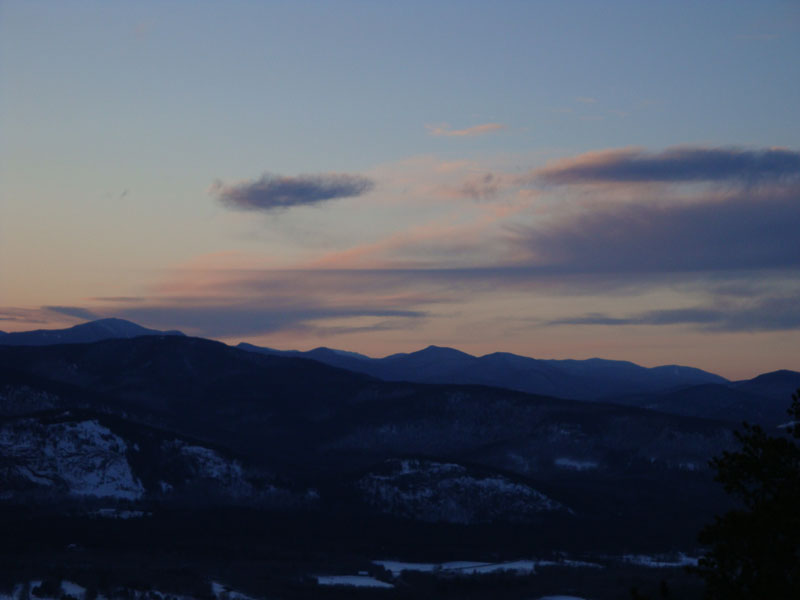 Racing the sun, I was able to make it to the summit with some time to spare. While the clouds were going to prevent any sort of dramatic sunset, it was nonetheless still a nice site. Perhaps the best colors were actually to the north, over Mt. Carrigain.