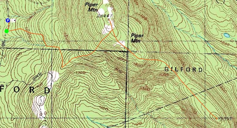 Directions to trailhead: From Route 11A East (from Route 3), take a right on Hoyt Road. Continue down this road as it becomes Belknap Mountain Road. At the end of this road, take a left. There will eventually be a turnaround area with a private road sign. Park here, and continue up the road on foot. The Piper Whiteface Trail trailhead will be on the left side of the road.
