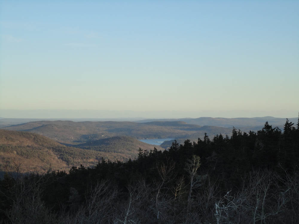 With a nice, but brisk, afternoon in store, I took a little time off and headed south to hopefully get up Piper Mountain in time for the sunset. Starting from near the end of the gated Carriage Road, I turned onto the Piper Mountain Trail and was soon faced with a slightly tricky water crossing - most of it had frozen over, but not quite firm enough to easily cross. After crossing, I slowly jogged up the Piper Mountain Trail and then south to the true summit along the green trail.