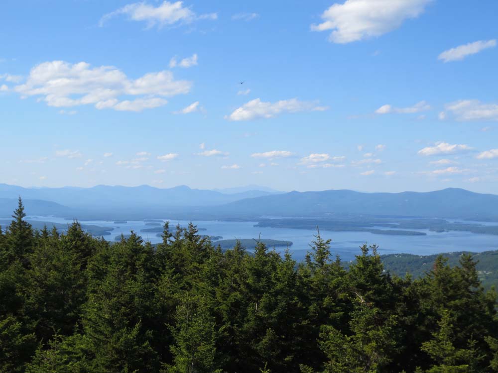 Looking at the Sandwich Range, Mt. Washington, and the Ossipee Range from the Belknap Mountain fire tower