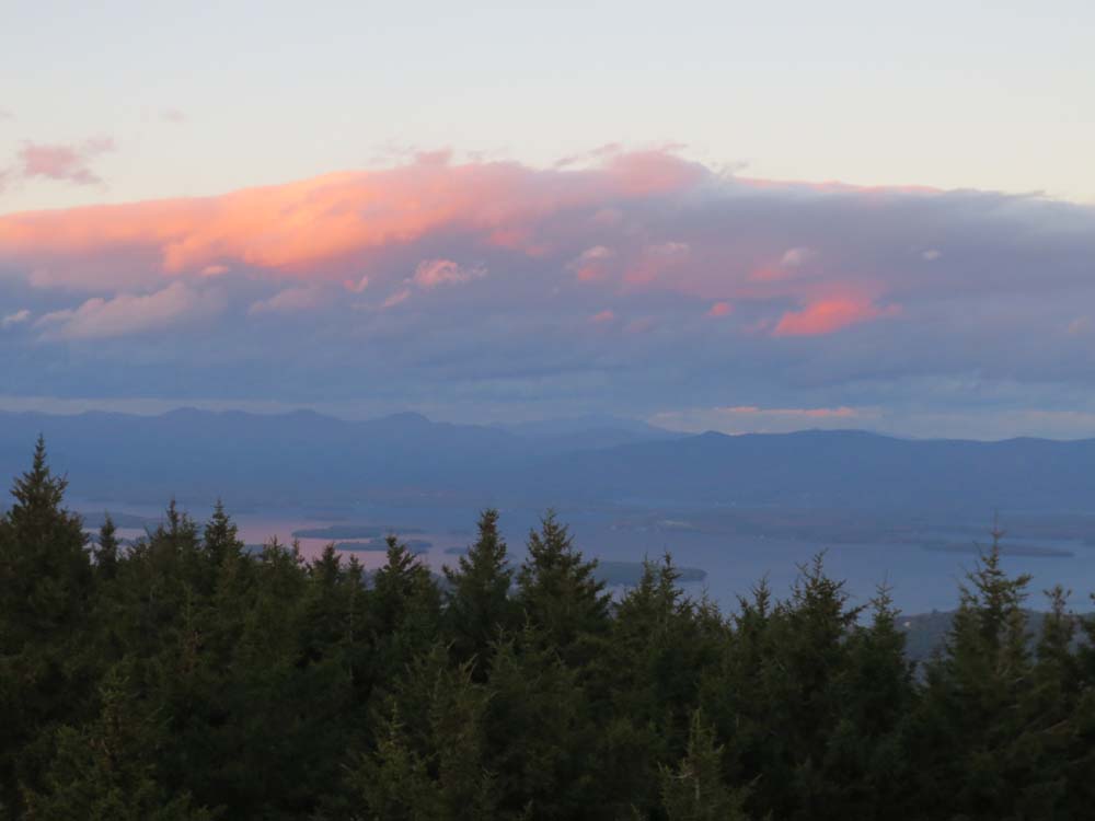 Strong wind gusts on the fire tower at sunset. Nice display. Mt. Washington view cleared around this time.