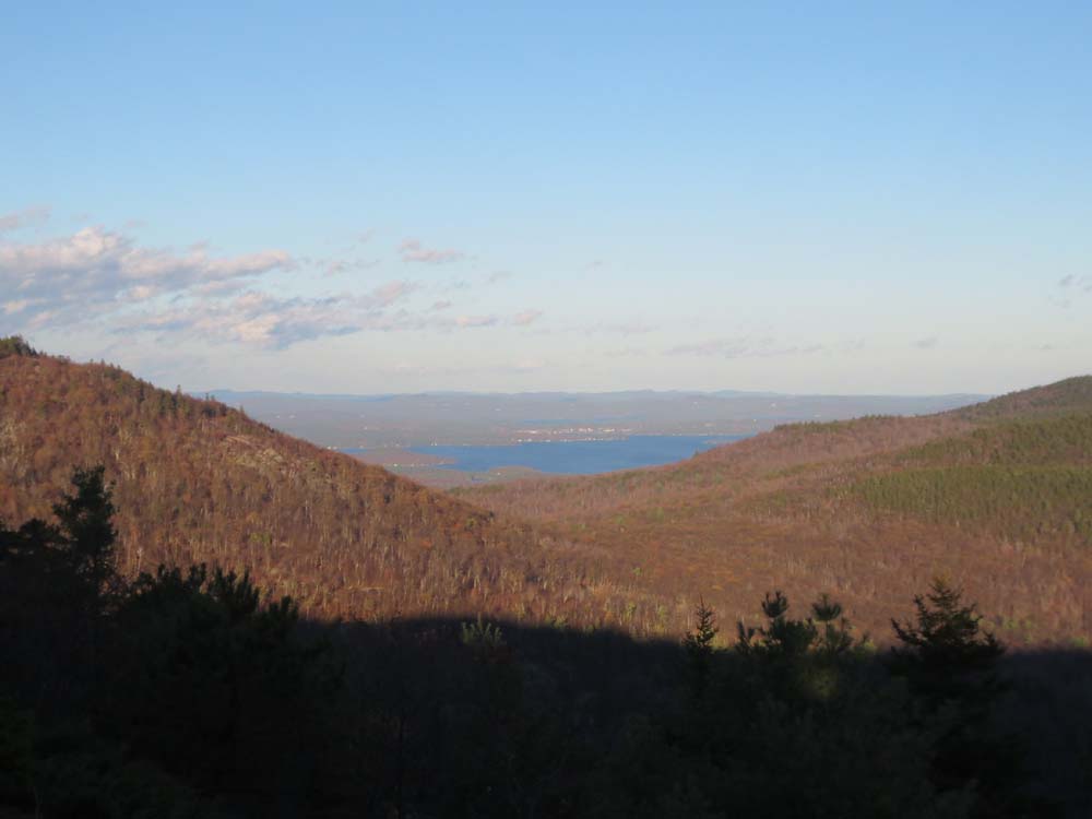 Looking at Lake Winnipesaukee from near the summit of Piper Mountain