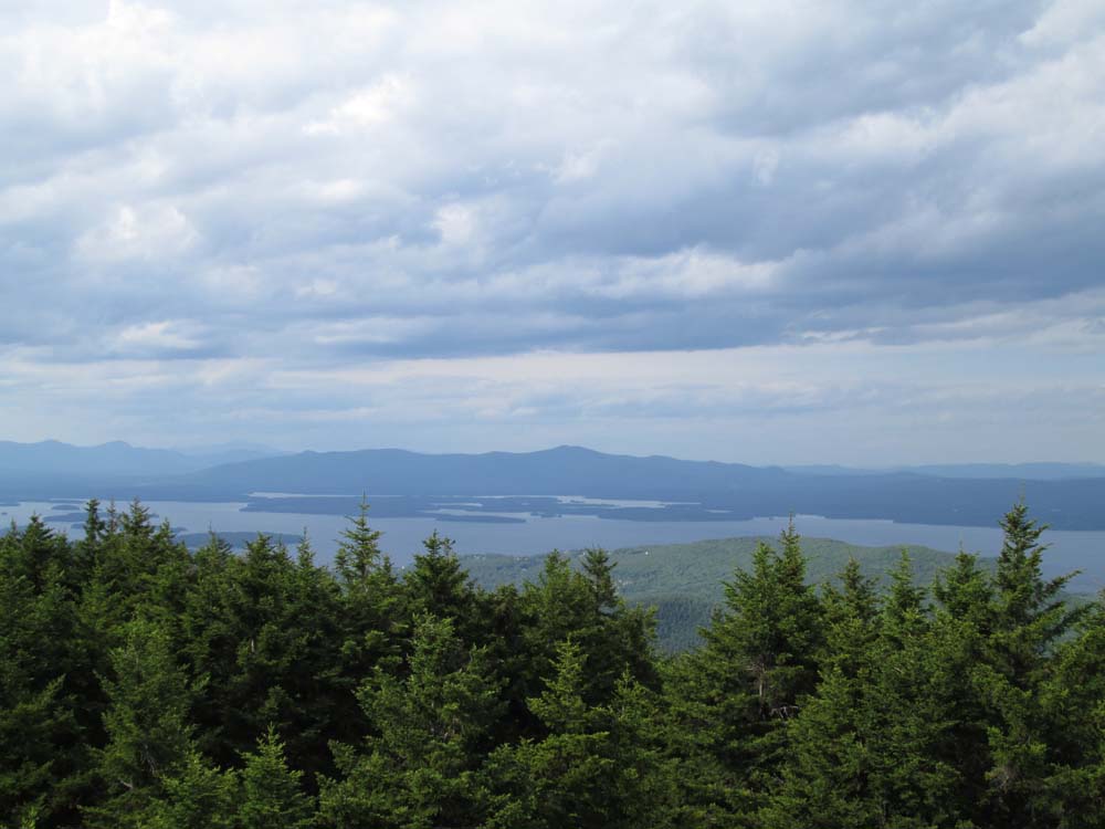 Looking at Lake Winnipesaukee from near the summit of Piper Mountain