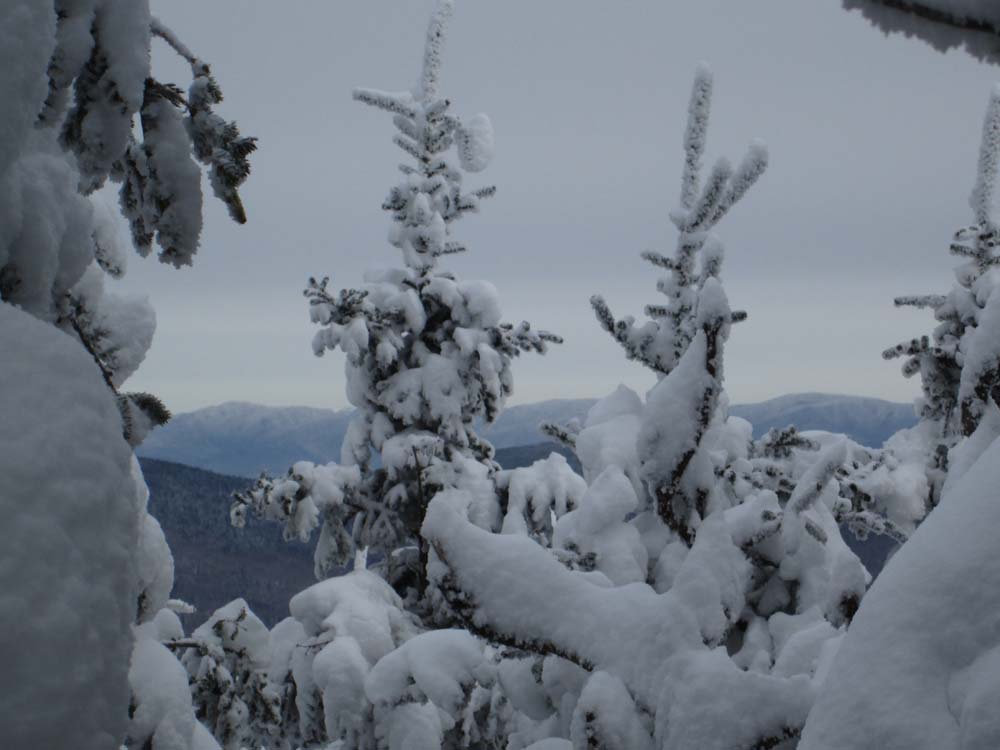 Amazing what a few miles can do. We went from 2-3 feet of snow on West Field yesterday to 2-3" of snow on Pliny (subpeak of Waumbek) today.
