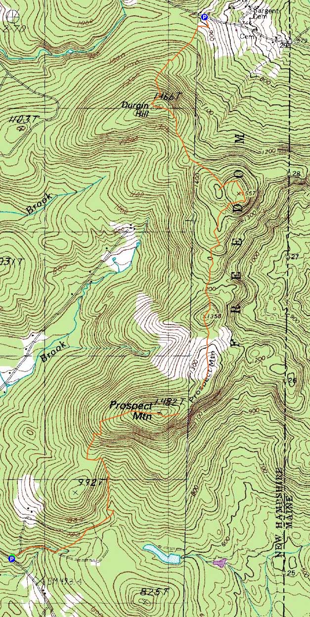 Route: Scarboro Ridge Trail, (Prospect Mountain), Scarboro Ridge Trail, bushwhack, Scarboro Ridge Trail, (Durgin Hill), Scarboro Ridge Trail