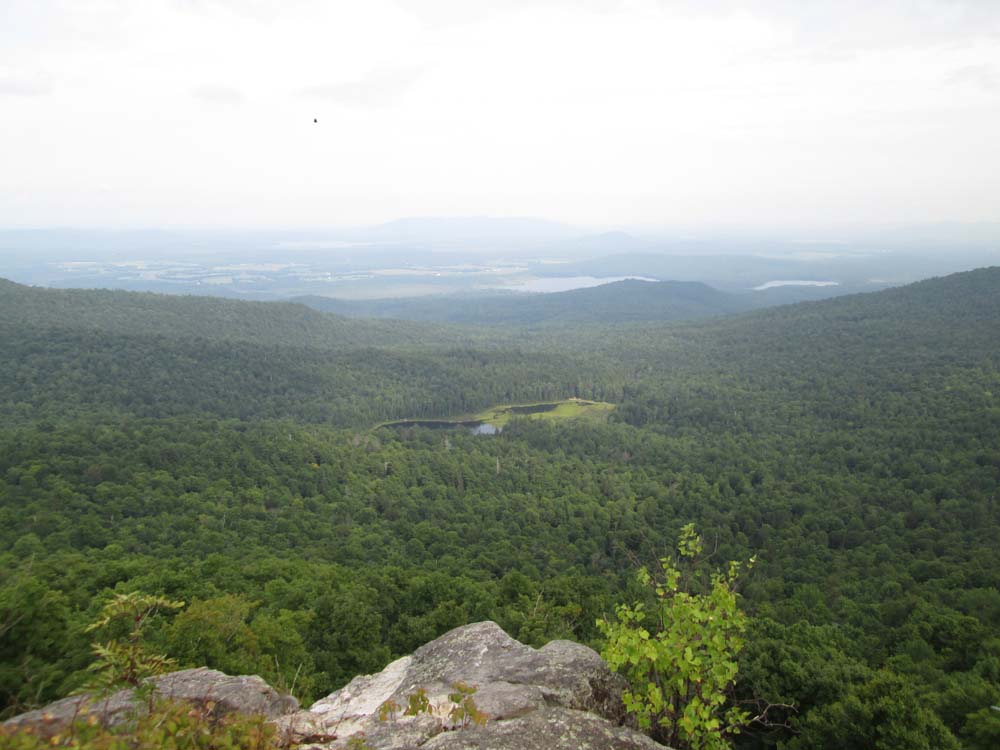 Looking at Province Pond and Pleasant Mountain from the burnt knoll of Mt. Shaw