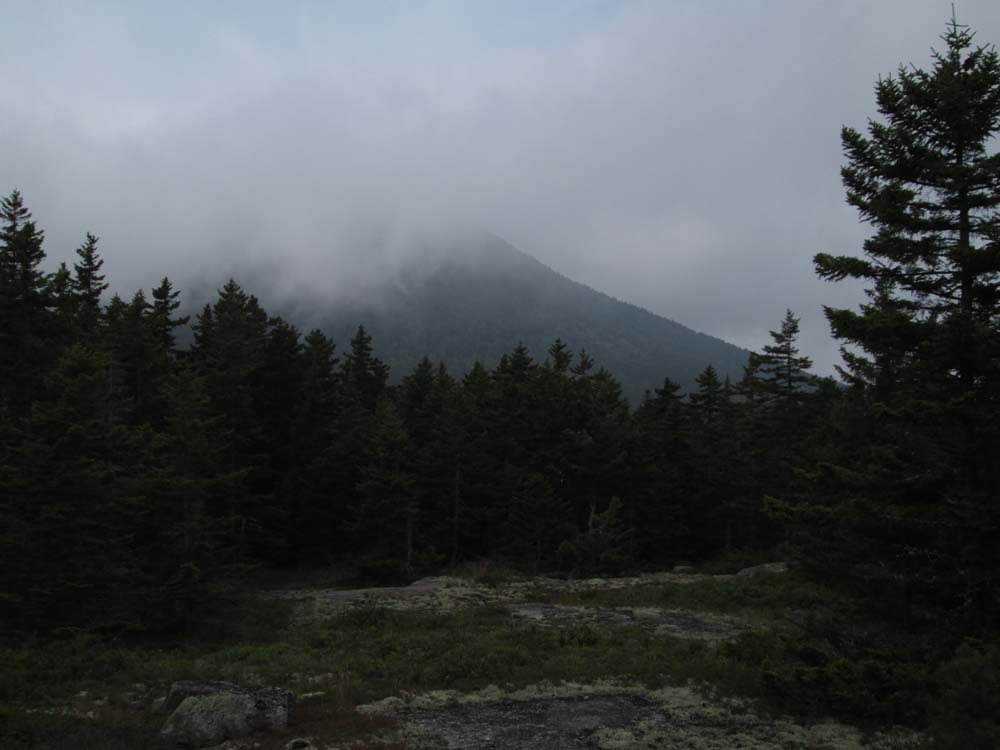 Foggy views toward Kearsarge North from near the summit of Rickers Knoll