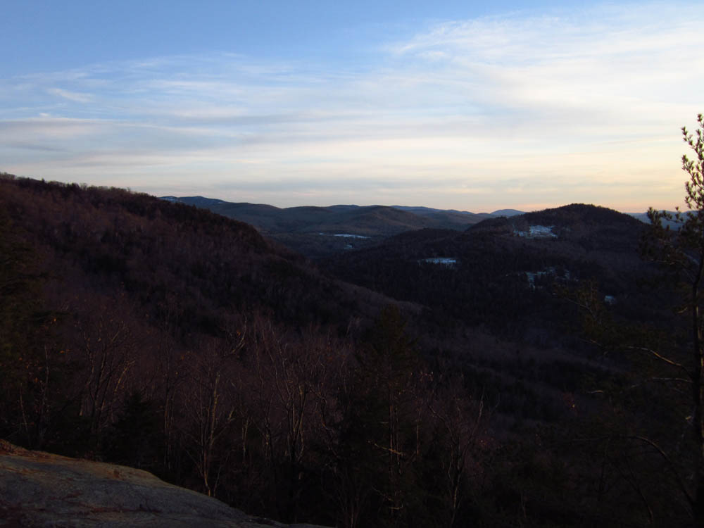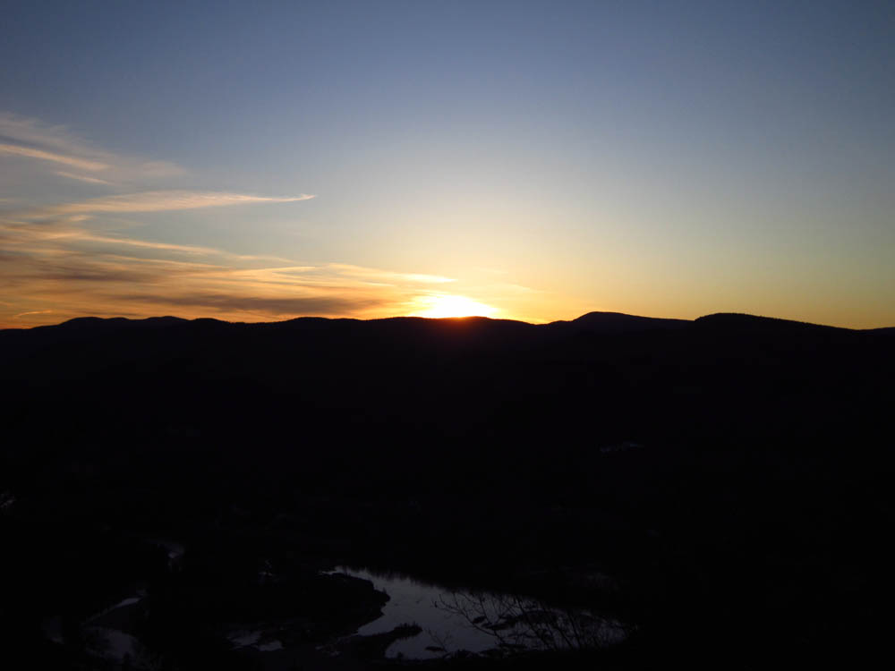A quick jog up the somewhat steep access road up Russell Crag. Nice southern views from the ledges, a short, open bushwhack from the communications tower. Surprisingly mild sunset temperatures considering the time of year.
