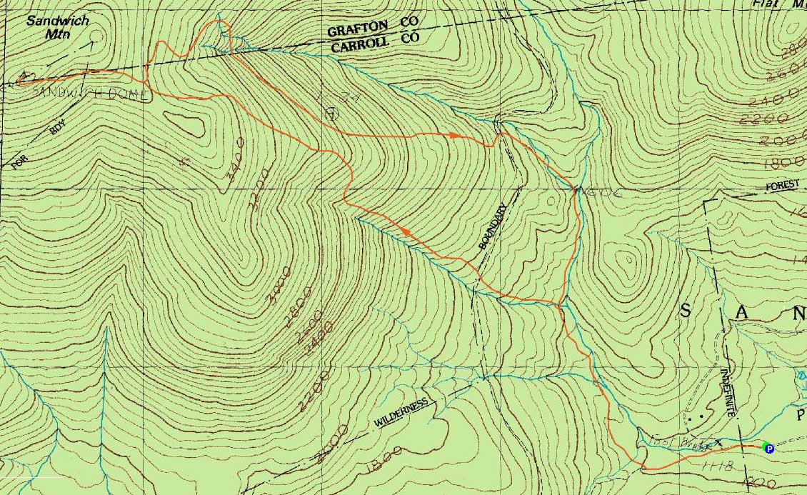 Route: Flat Mountain Pond Trail, Bennett Street Trail, Gleason Trail, Bennett Street Trail, (Sandwich Mountain), Bennett Street Trail, Flat Mountain Pond Trail