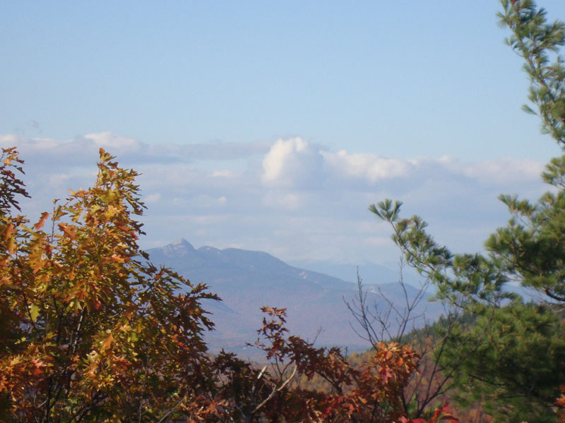 Looking at Mt. Chocorua and Mt. Washington from the boulder near the summit of Sentinel Mountain