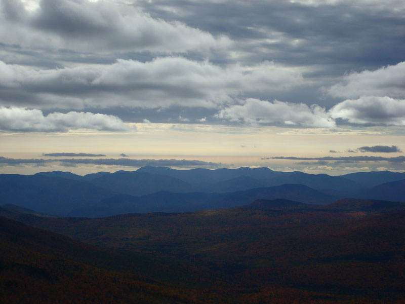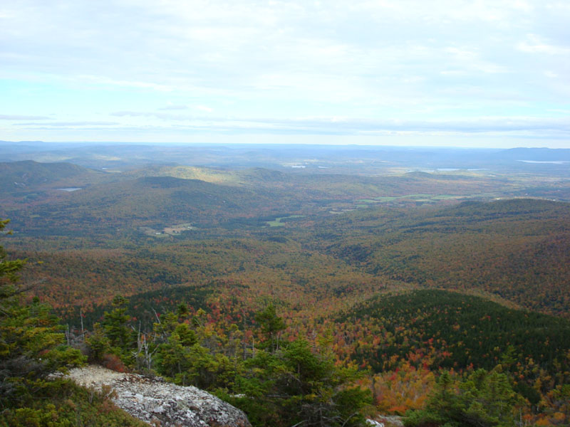 I had this panoramic viewpoint all to myself - something I likely would not have had if I were doing a 4,000 footer. The views stretched way north towards Rangeley, Maine, out to the colourful Carter Ridge, a cloud covered Mt. Washington, the Sandwich Range, Pleasant Mountain, and beyond.