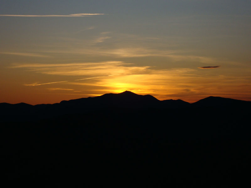 The sun setting behind Mt. Carrigain as seen from South Doublehead