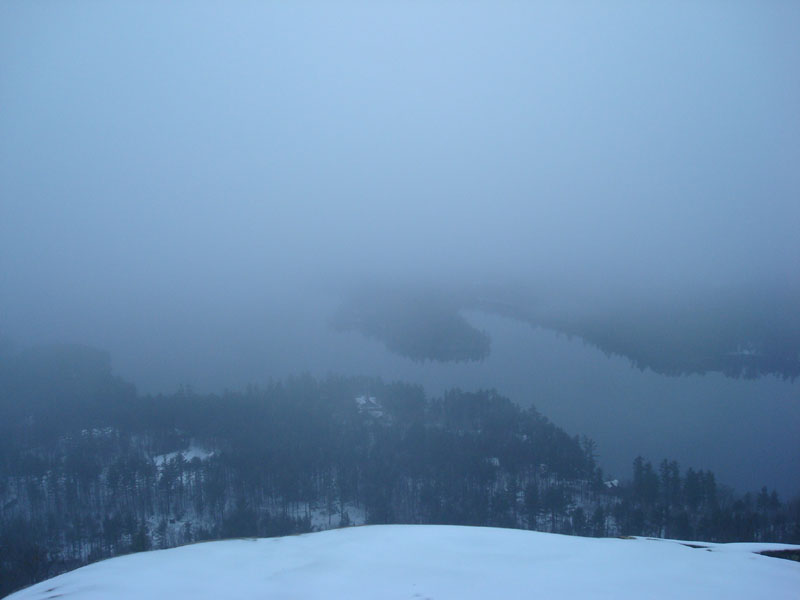 Though there was a limited view of the eastern shores of Squam Lake, there wasn't much else to see. I waited for a bit, but then gave up like the French and headed back down. As I neared the parking lot, I could see the fog had lifted from much of the Squam Range, but not from the lake. Had there been another 30 minutes of sunlight, I suspect the sunset would have been spectacular.