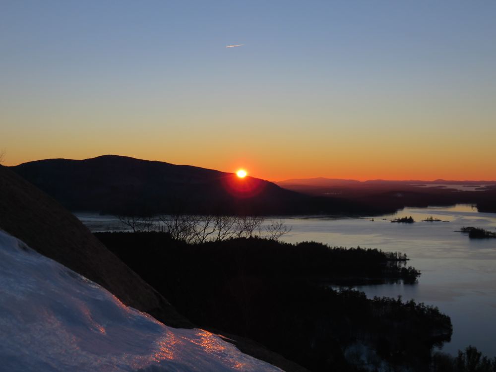 Lower portion of the trail was very icy and needed light traction for safe descent. Upper portion of the trail was generally frozen granular and bootable. In the woods, about 2 inches of snowpack with a breakable crust on top.