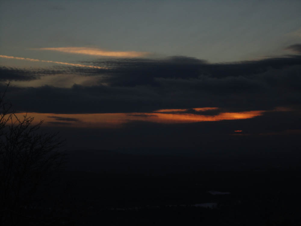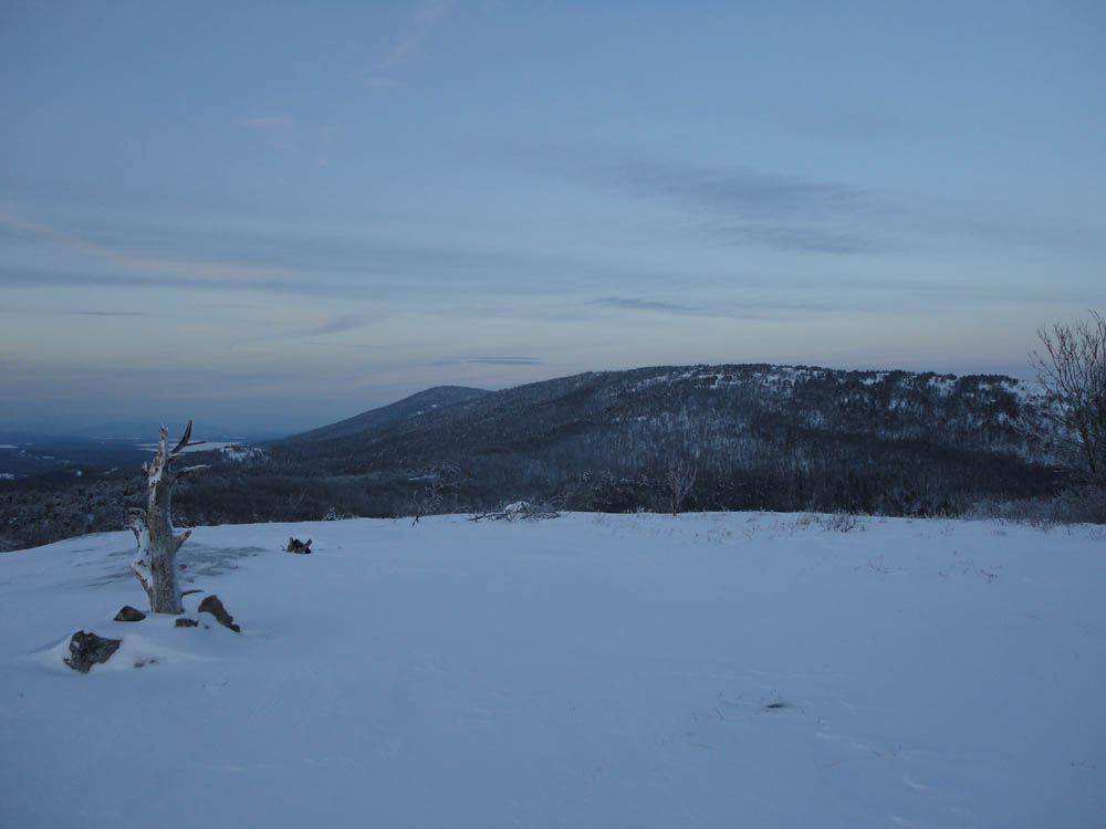 The upper portion of the route, sometimes used by snowmobiles, was also unbroken. As a result, I reached the summit just prior to sunset. Unfortunately, the best colors ended up being in advance of the sunset, as clouds were moving in on the west.