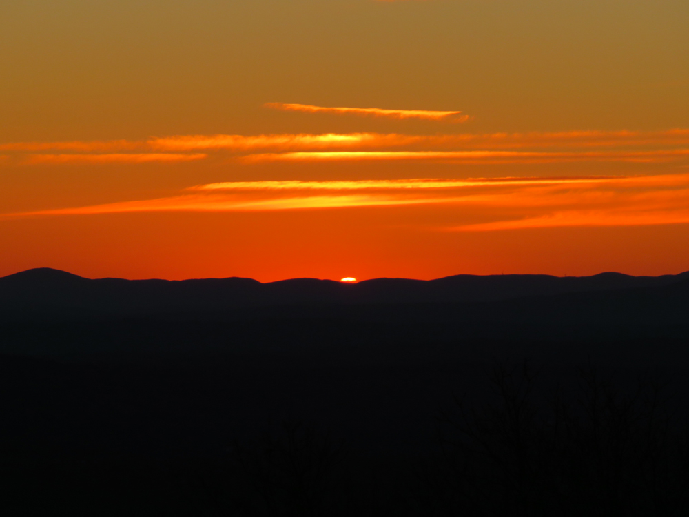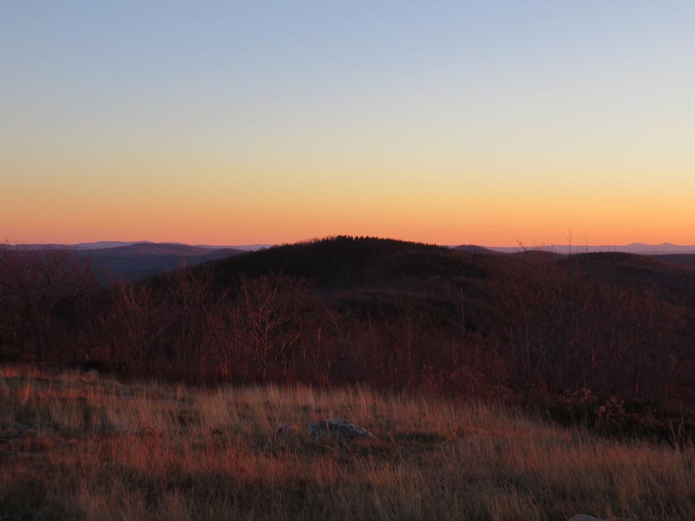 Chilly sunset with a hint of winter in the winds. Snowmaking visible on Pats Peak and Waterville.