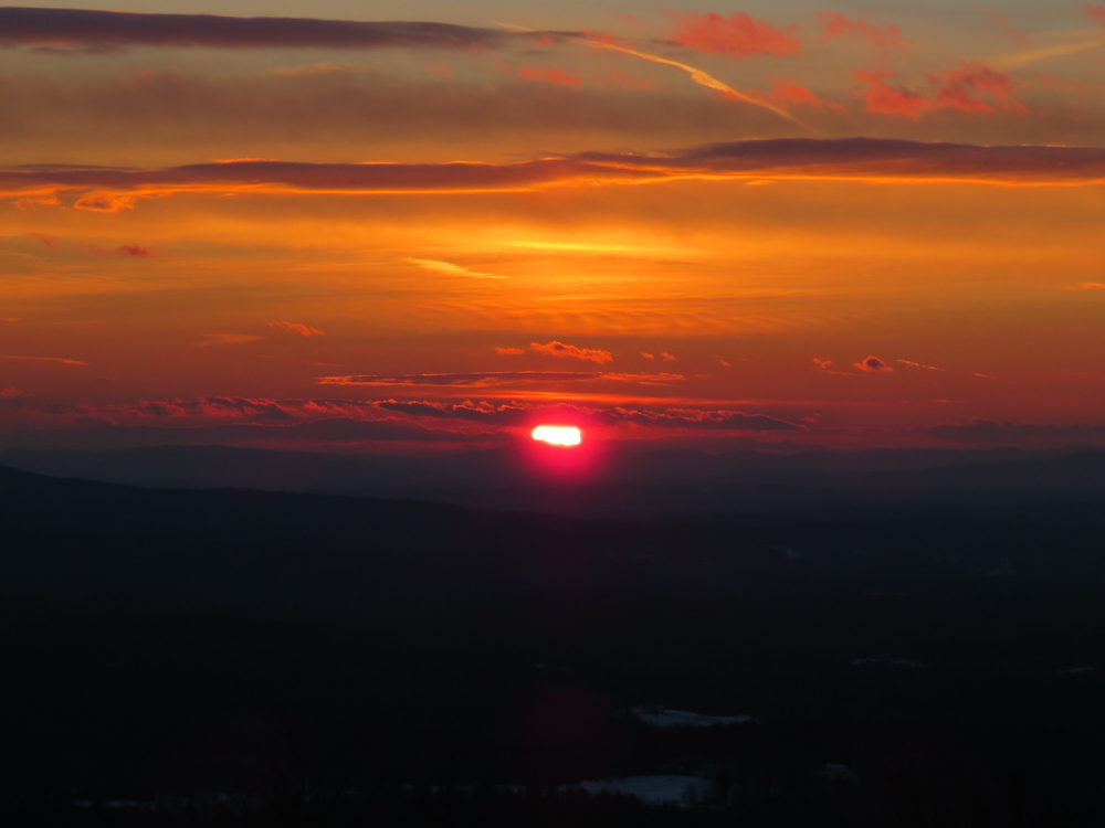 No recent use from the stonewall to the summit, however. Generally about 2" of powder on top of ice. Large puddles appear to be pretty firmly frozen. Some snow drifts approaching a foot deep in places. Caution needed on the final ascent, as there was a lot of ice lurking underneath the powder.