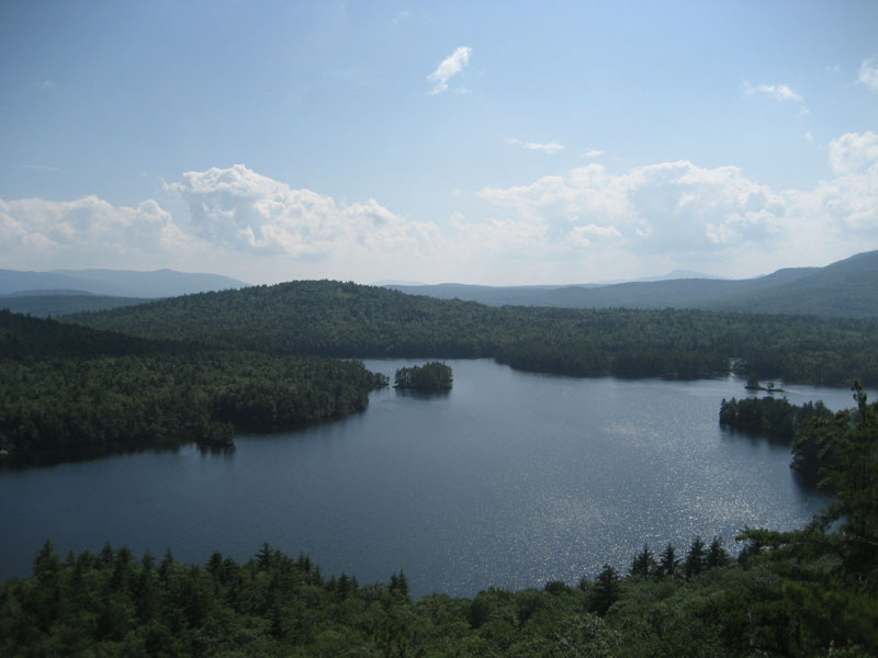 Looking over Whitten Pond at the Ossipees (left) and Mt. Israel (right) from one of the Whitten Ledge vistas