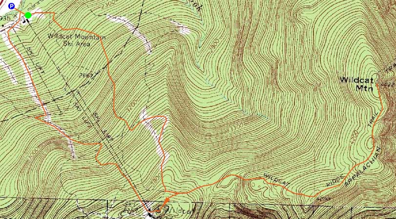 Route: Ski trails, bushwhack, Wildcat Ridge Trail, (Wildcat C), Wildcat Ridge Trail, (Wildcat B), Wildcat Ridge Trail, (Wildcat A), Wildcat Ridge Trail, (Wildcat B), Wildcat Ridge Trail, (Wildcat C), Wildcat Ridge Trail, (Wildcat D), Wildcat Ridge Trail, ski trails