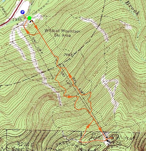 Directions to trailhead: Take Route 16 North from Jackson to the Wildcat Ski Area entrance. The old gondola terminal is located between the current gondola terminal and the upper lodge.