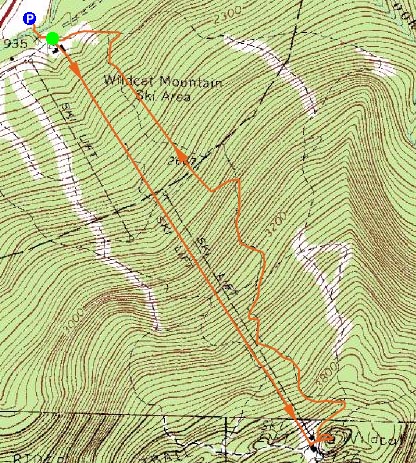 Directions to trailhead: Take Route 16 North from Jackson to the Wildcat Ski Area entrance. The old gondola terminal is located between the current gondola terminal and the upper lodge.