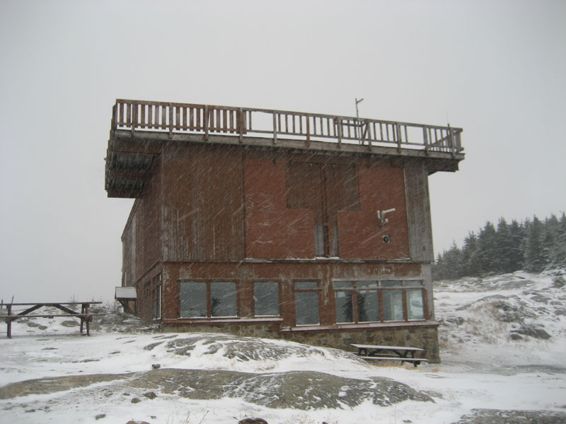As I climbed, the winds and snow picked up. I also had to proceed with more caution, as there was an inch or so of snow and a decent amount of ice. By the time I reached the top of the ski area, it was a full fledged snowstorm. After reaching the summit, I took an alterative trail back down to the top of the ski area.