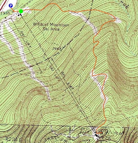 Directions to trailhead: Take Route 16 North from Jackson to the Wildcat Ski Area entrance. The Polecat ski trail starts (ends) at the summit quad/gondola bottom terminal.