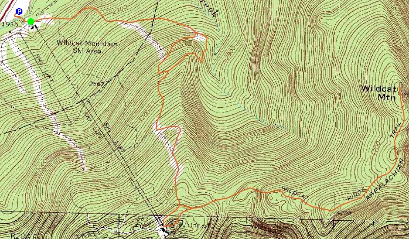 Route: Lower Polecat, Middle Polecat, Upper Polecat, Wildcat Ridge Trail, (Wildcat D), Wildcat Ridge Trail, (Wildcat C), Wildcat Ridge Trail, (Wildcat B), Wildcat Ridge Trail, (Wildcat A), Wildcat Ridge Trail, (Wildcat B), Wildcat Ridge Trail, (Wildcat C), Wildcat Ridge Trail, bushwhack, ski trails
