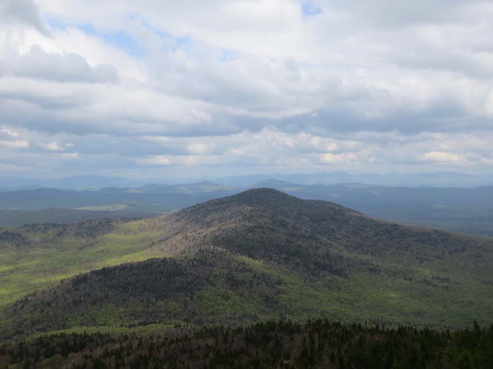 Route: Red Trail, West Peak Trail, Summit Trail, ski trails, (Burke Mountain), Summit Trail, ski trails