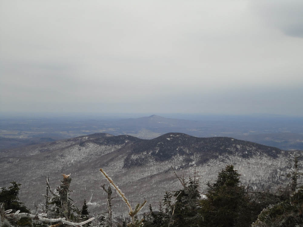 With a mediocre forecast, we headed up to northern Vermont for a quick hike of Jay and Big Jay. We followed the Long Trail until the branches and blowdowns clogged the corridor a bit too much. At that point, we bushwhacked a few dozen yards over to the ski trail, then followed it up to the abandoned (closed due to winds) summit area. After a quick hike up to the windy highpoint (cloudy views ranging from the Adirondacks, Mansfield, and Presidentials), we returned to the tramway terminal and headed toward Big Jay.