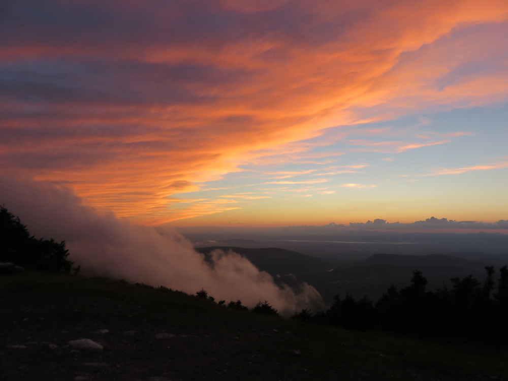 Clouds rolled over Mt. Abraham, obscuring the sunset. However, the couple dozen less vertical feet on Lincoln Peak made all of the difference, as there was an excellent post-sunset display.