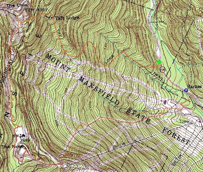 Directions to trailhead: Take Route 108 North from Stowe. In winter, the road is gated just past the ski area gondola parking lot entrance. There is plowed parking just past that entrance, on the right. The Long Trail will eventually be on the left.