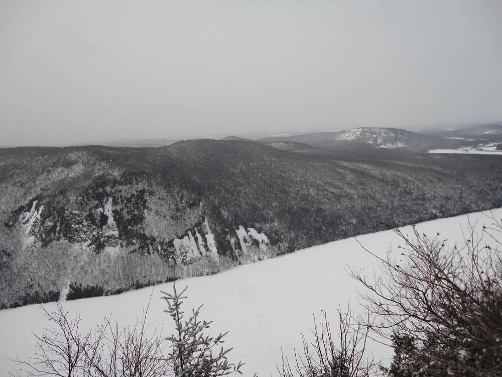 Continuing over a few false bumps, I eventually reached what I believed to be the highpoint (a few feet to the west of the trail), then continued a few dozen feet to what would have been a superb southeastern viewpoint (due to incoming snow flurries, only Burke was visible).