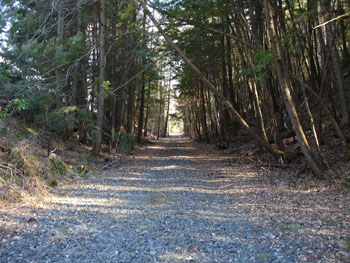 ![]() Entrance to the trail from Hoosac Road ![]() Second entrance on trail ![]() Old railroad tie ![]() Heading northwest ![]() Looking southeast from near the long bridge |